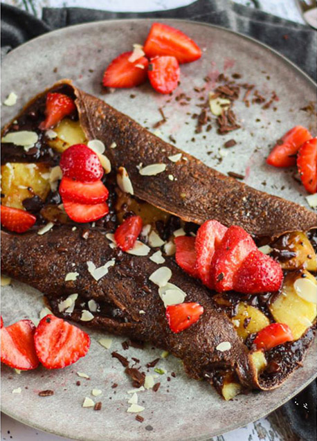 • Disposez l’omelette chocolat dans une assiette, pliez les rebords.