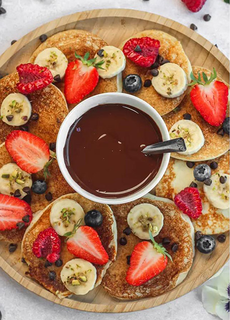 - Servez les pancakes avec des fruits frais et quelques pépites de chocolat.